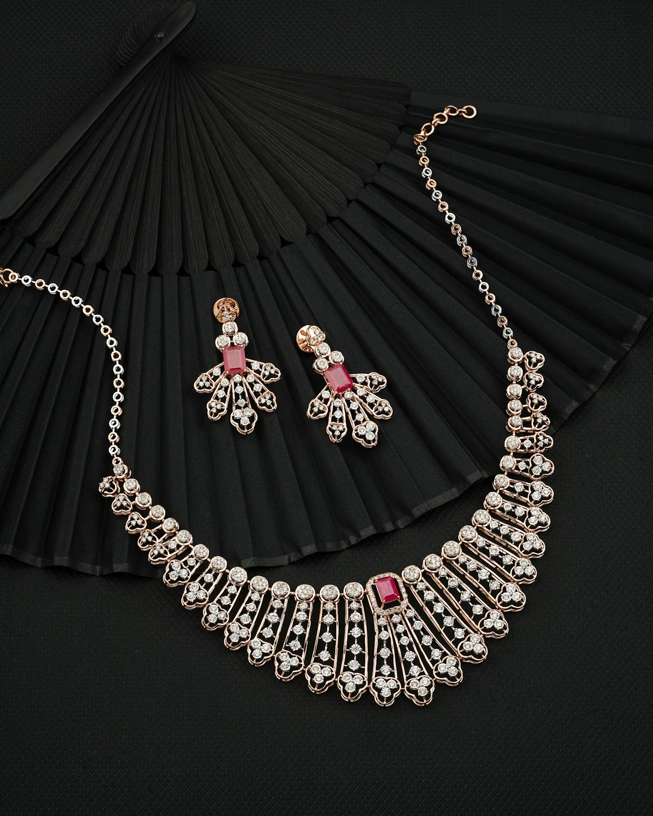 This jewel features a red sapphire framed by sparkling diamonds, creating a breathtaking display of light and color.