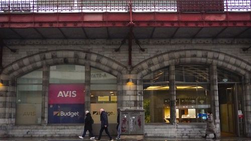You enter through the entrance where the Europe Car sign can be seen.